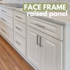Face Frame ($$) - (AKA Overlay) - there are larger gaps between each set of doors and drawer fronts where the face frame is visible; the doors and drawer fronts rest on top of the face frame; the face frame is not flush with the doors and drawer fronts.